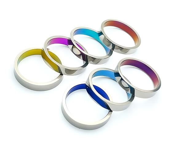 独特の色はメッキや塗装ではなくチタンが表面に作り出す酸化膜が光の反射に干渉して見せている色です。