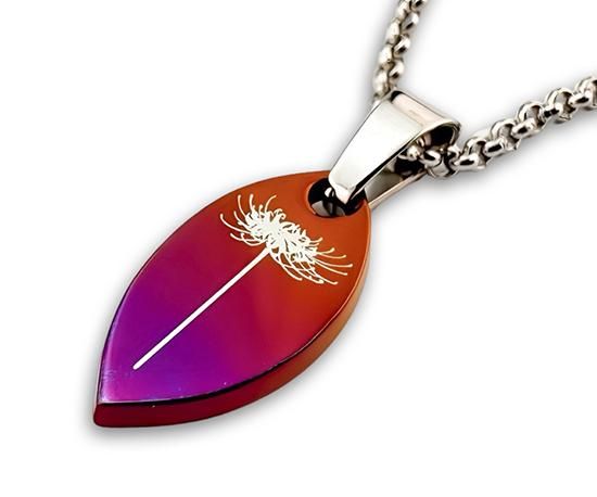 黄昏時の空の様な橙色と紫色のグラデーションに一輪の彼岸花を入れました。