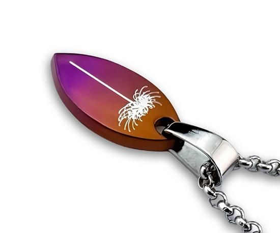 一点一点削り出して制作されたチェーン通し込みで2.5cmほどのマーキス形の純チタンのペンダントトップです。