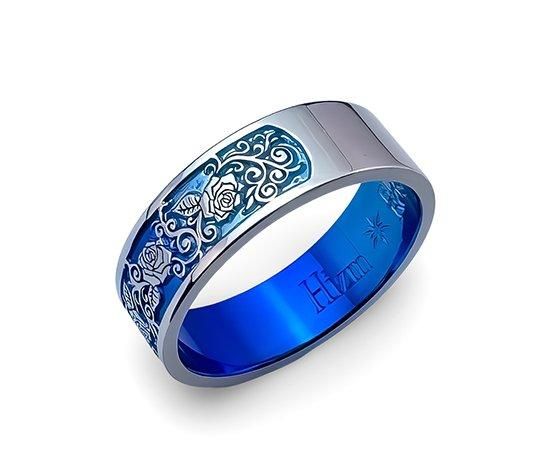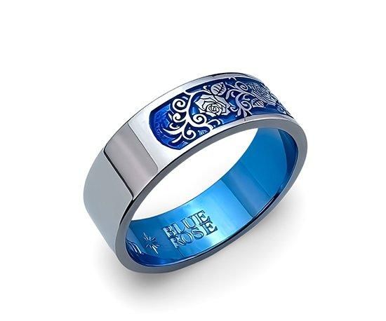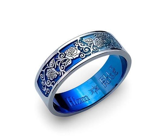 Hizm/BLUE ROSE/Three Rose Relief Ring 6mm幅 青グラデーション/純チタン製