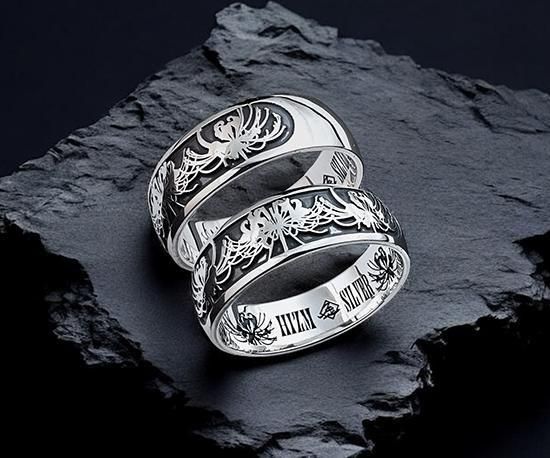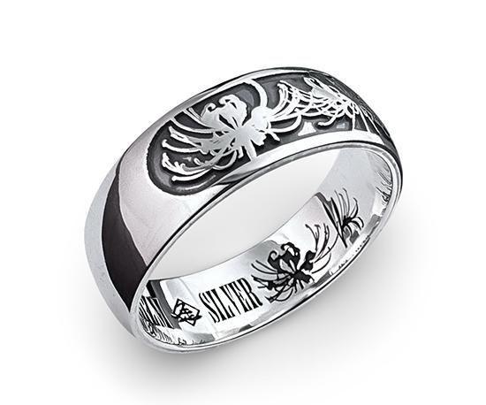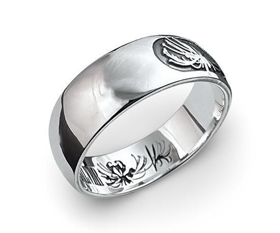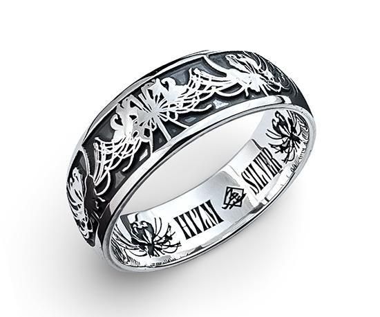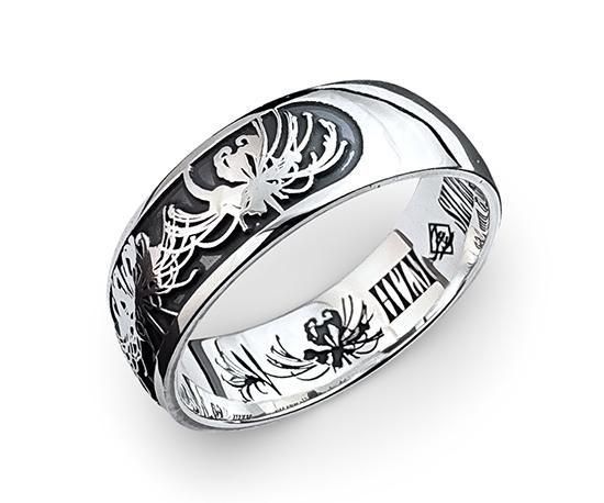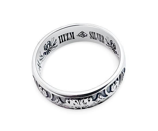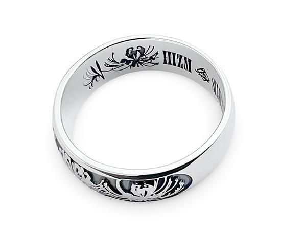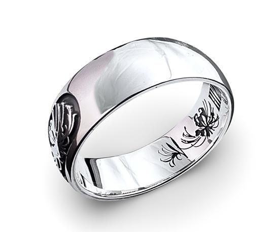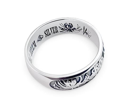 シルバー925を贅沢に使用した7mm幅の甲丸リングに、咲き誇る彼岸花を丁寧に彫り込みました。