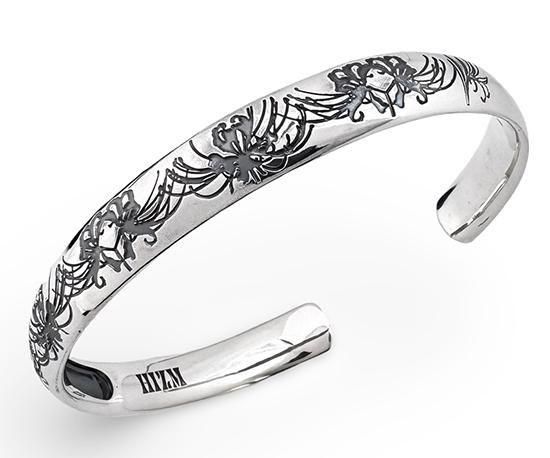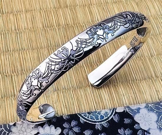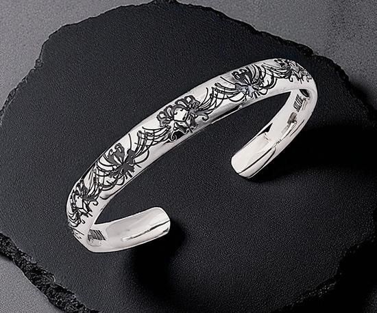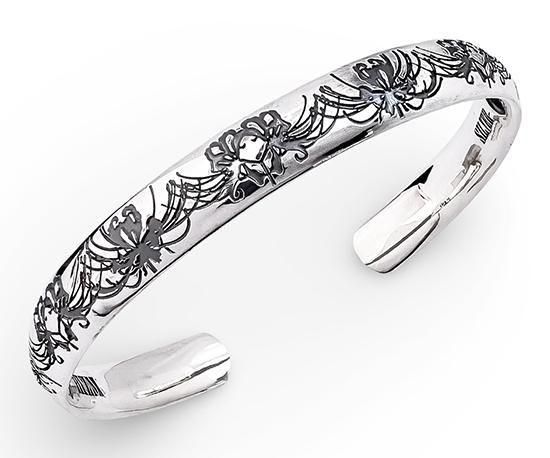 珠のように連なって咲く彼岸花を、静かに、そして力強く刻み込んだ「連珠彼岸花バングル」。