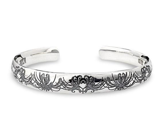連珠彼岸花バングル9mm幅/SV925/燻し鏡面仕上げ