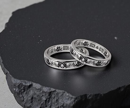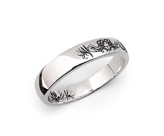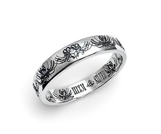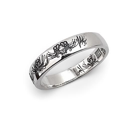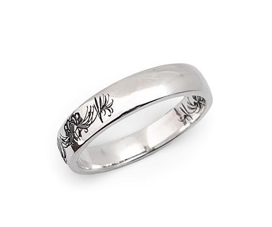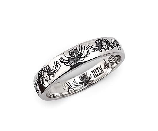最大の特徴は、リングの内側と外側に施された彼岸花の模様が一周つながる構成です。