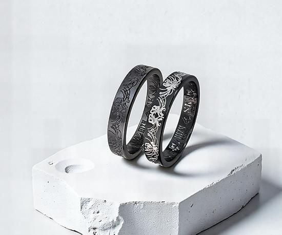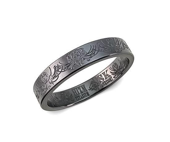 Hizm/SK accessory/絢爛彼岸花リング6mm幅【墨夜色】/マットブラック仕上げ/ブラックチタン製