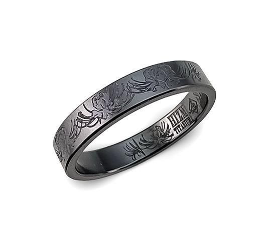 Hizm/SK accessory/絢爛彼岸花リング6mm幅【宵闇色】/マットブラック仕上げ/ブラックチタン製