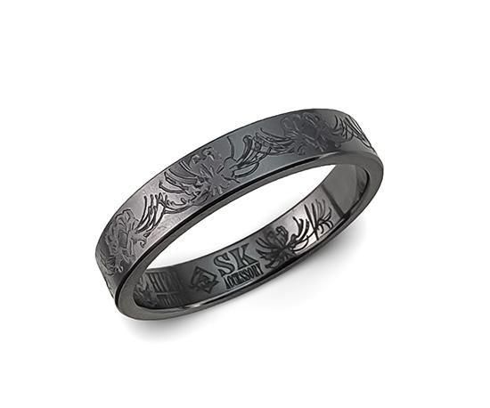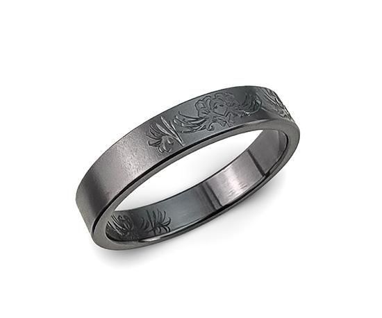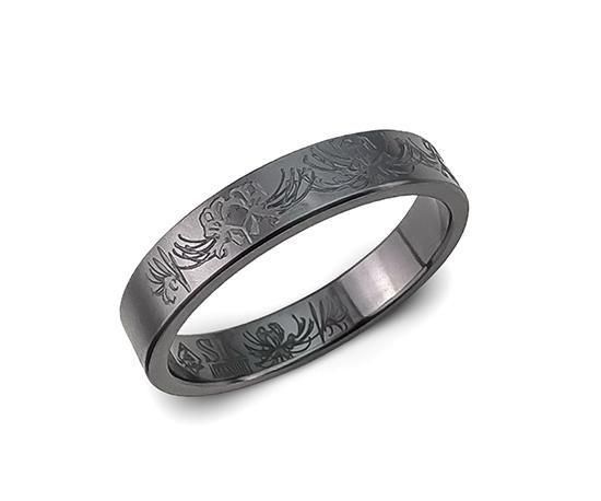 【準備中】Hizm/SK accessory/墨夜輪舞彼岸花リング4mm幅/ブラックチタン製/マットブラック仕上げ