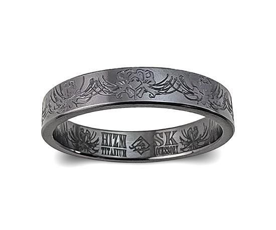 Hizm/SK accessory/黒銀燦然彼岸花リング6mm幅 マットブラック仕上げ/ブラックチタン製