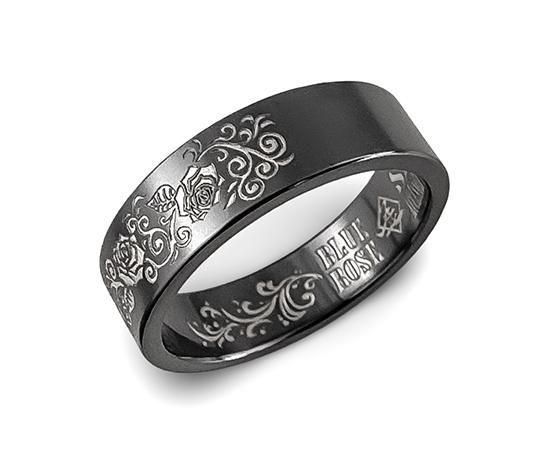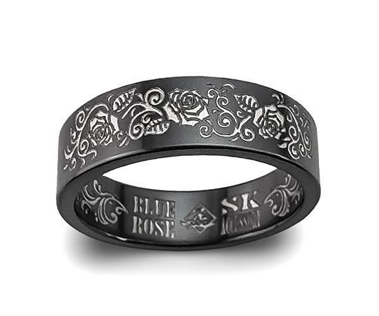 【準備中】Hizm/BLUE ROSE/SK accessory/Three White Rose Ring 6mm幅/ブラックチタン製/マットブラック仕上げ