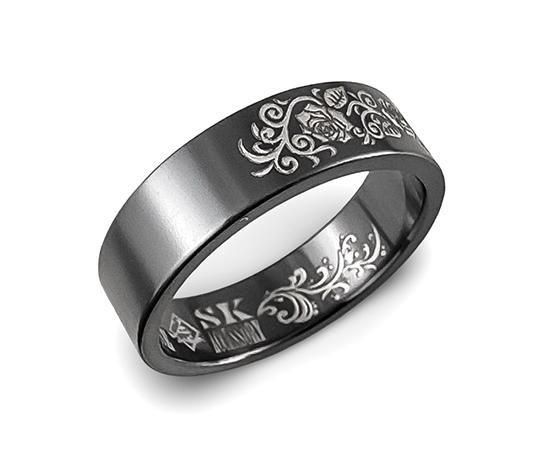 Hizm/SK accessory/燦然彼岸花リング6mm幅 ストーンブラック仕上げ/ブラックチタン製