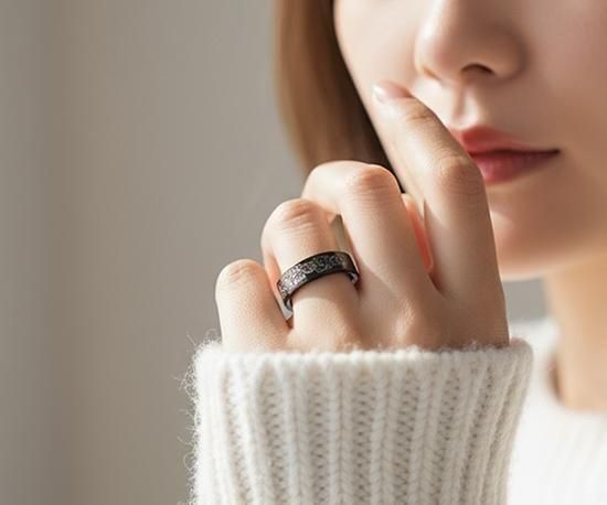 Hizm/SK accessory/墨夜桜華リング【夜桜】6mm幅/マットブラック仕上げ/ブラックチタン製