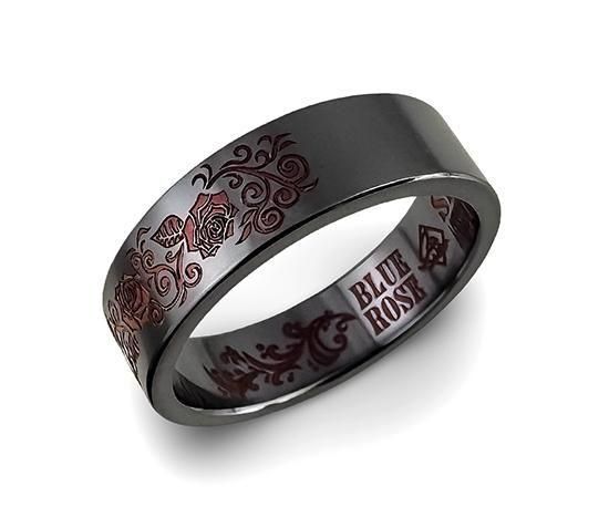 Hizm/BLUE ROSE/Tribal Red Rose Ring 4mm幅/純チタン