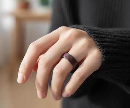 Hizm/SK accessory/墨夜桜華リング【夜桜】6mm幅/マットブラック仕上げ/ブラックチタン製