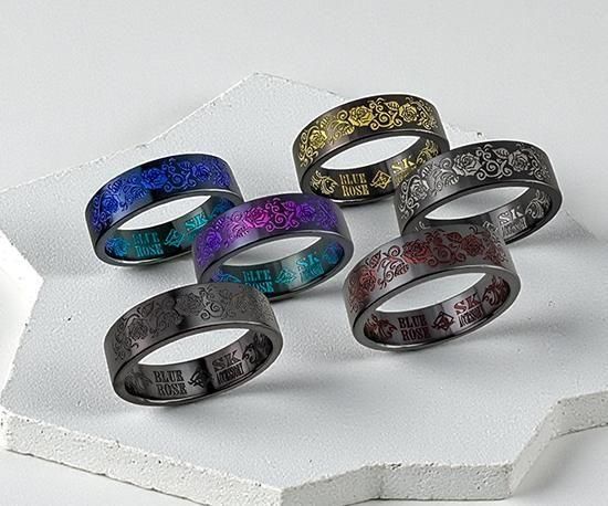 Hizm/SK accessory/黒彩輪舞彼岸花リング4mm幅【紺碧色】/ブラックチタン製/マットブラック仕上げ